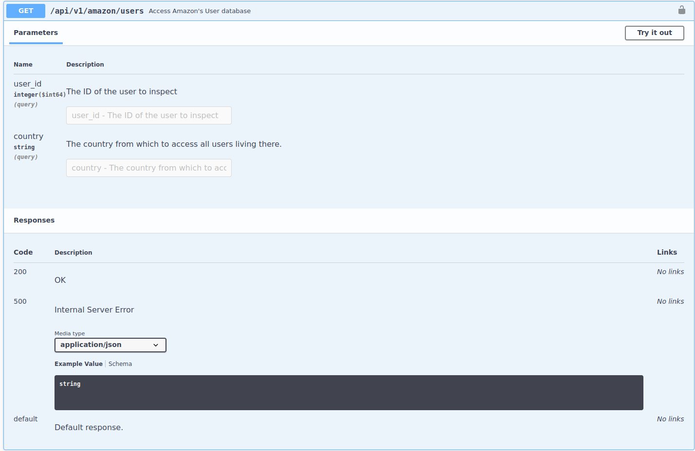 The endpoints contains data on all sorts of data from Amazon: authors and books from Amazon Books, users who visited Amazon and how each of these users bought certain Amazon products. As you might be hinting, this is quite some sensitive data. Unless you work at Amazon, you’ll probably never have access to this. That’s when security comes in.